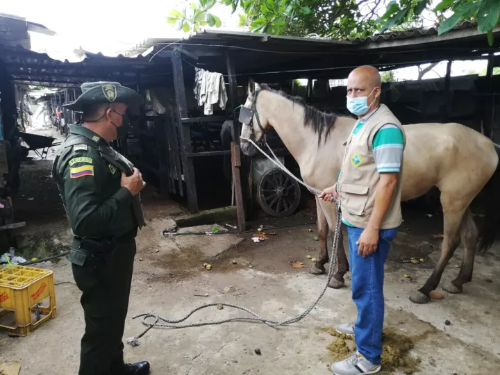 Una vez conocido el caso del caballo cochero que se desplomó en el Centro Histórico de la ciudad durante las últimas horas, desde la Unidad Municipal de Asistencia Técnica Agropecuaria -UMATA- se movilizó un equipo de veterinarios, acompañados por la Policía Ambiental, para la verificación y monitoreo del estado de salud del equino identificado con el nombre de Signo Peso, perteneciente a la pesebrera Marbella 2.