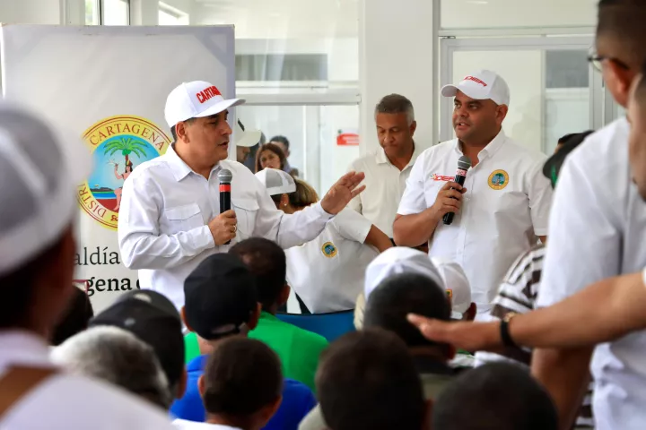 Cartagena de Indias D. T. y C., 5 de septiembre de 2024. En una nueva toma del Gobierno distrital al barrio El Pozón, acompañado por todo su gabinete, el alcalde mayor de Cartagena, Dumek Turbay Paz, encabezó un recorrido por el tradicional vecindario, donde además de escuchar a la comunidad, fueron verificados los avances en cada uno de los compromisos adquiridos previamente, en medio de una jornada integral que llevó una nutrida oferta institucional.