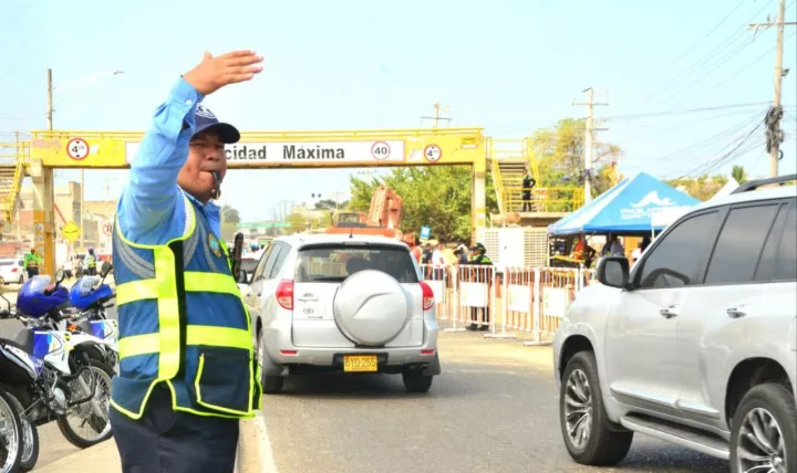 Agentes y reguladores de tránsito hacen paso controlado en cruce semafórico de Ceballos, dando prelación según el flujo vehicular.