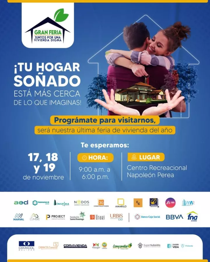 Cartagena de Indias D. T y C; 17 de noviembre 2023. El Fondo de Vivienda de Interés Social y Reforma Urbana Distrital, Corvivienda, invita a la ciudadanía a participar de de la Gran Feria “Juntos Por Una Vivienda Digna”, en alianza con Camacol y Comfamiliar, donde diferentes constructoras y entidades financieras estarán llevando su oferta a la ciudadanía.