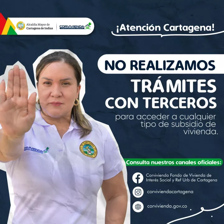Cartagena de Indias, D T y C, 15 de febrero de 2024. Corvivienda hace un llamado a la ciudadanía para que evite caer en estafas y recalca que la entidad no realiza ningún tipo de trámite de vivienda por medio de terceros.