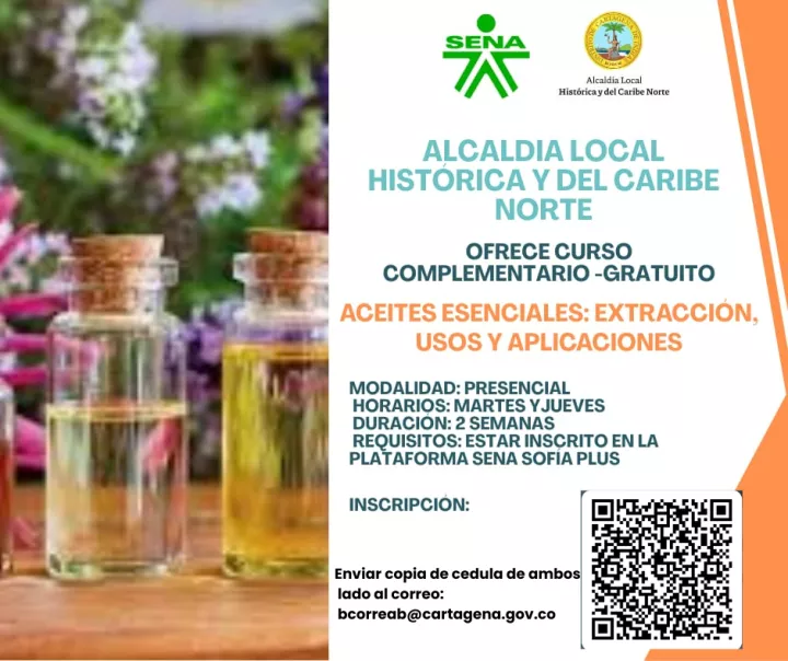La Alcaldía Local Histórica y del Caribe Norte, en colaboración con el Servicio Nacional de Aprendizaje (SENA), invita a los ciudadanos a participar en un curso complementario gratuito sobre aceites esenciales. Este curso se realizará de manera presencial, los martes y jueves, durante un periodo de dos semanas.