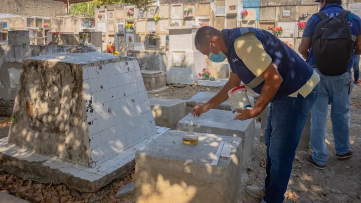 La estrategia inició en el cementerio del barrio Ternera, el cual ha reportado un aumento significativo en los casos de dengue, se continuará este jueves con el cementerio Jardines de Cartagena ubicado en el sector aledaño.