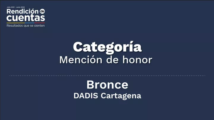 En la Categoría de Entidades Territoriales, la mención de Honor en medalla de Bronce fue para el Departamento Administrativo Distrital de Salud, DADIS.