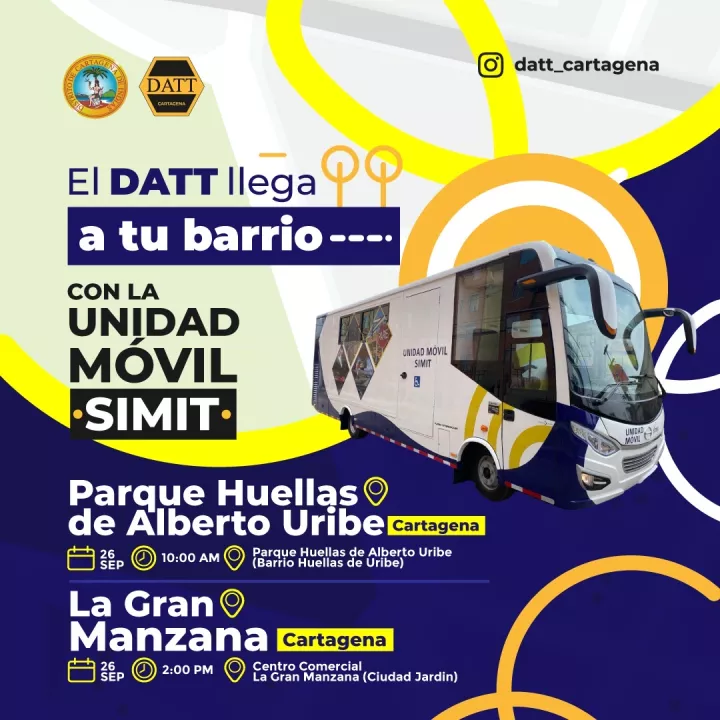 Cartagena de Indias, D. T. y C., 25 de septiembre de 2024. Este jueves 26 de septiembre, la Alcaldía Mayor de Cartagena, a través del Departamento Administrativo de Tránsito y Transporte de Cartagena, DATT, llega a tu barrio.