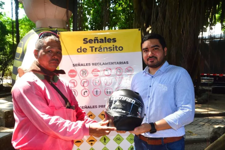 En puntos pedagógicos se realizan capacitaciones a los motociclistas, y a los que tienen su vehículo matriculado en Cartagena y documentación al día para circular en vía, se les entrega un casco certificado, para que transiten de manera segura hacia sus destinos