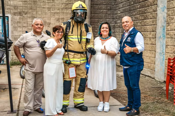 Cartagena de Indias D. T y C; 26 de octubre de 2023. El gobierno Salvemos Juntos a Cartagena se convirtió en el primer gobierno en los últimos 14 años en entregar trajes de aproximación al fuego a todos los miembros del cuerpo de bomberos de la ciudad. La Secretaría del Interior y Convivencia Ciudadana del Distrito, en compañía de la Personería Distrital y la Defensoría del Pueblo Regional, entregó los trajes que están diseñados específicamente para proteger a los bomberos de las altas temperaturas que se producen en situaciones de incendio o en condiciones de temperatura extrema.