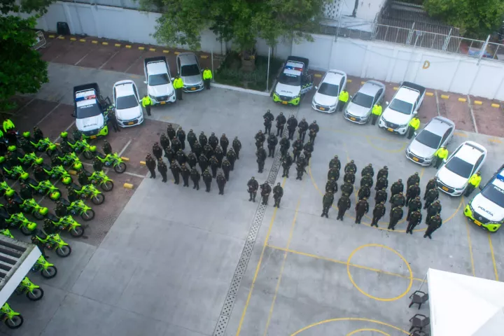 "Hoy recibimos un importante apoyo en temas de movilidad, nos entregaron 40 motocicletas, diez de ellas para trabajo de inteligencia y de investigación criminal, camionetas y automóviles, nos están apoyando con 80 computadoras, 75 radios de comunicación para nuestros cuadrantes, la construcción de siete CAI tipo, como también para fortalecer la comunicación entre las personas y las instituciones y entregaron 300 equipos a la red de participación Cívica.