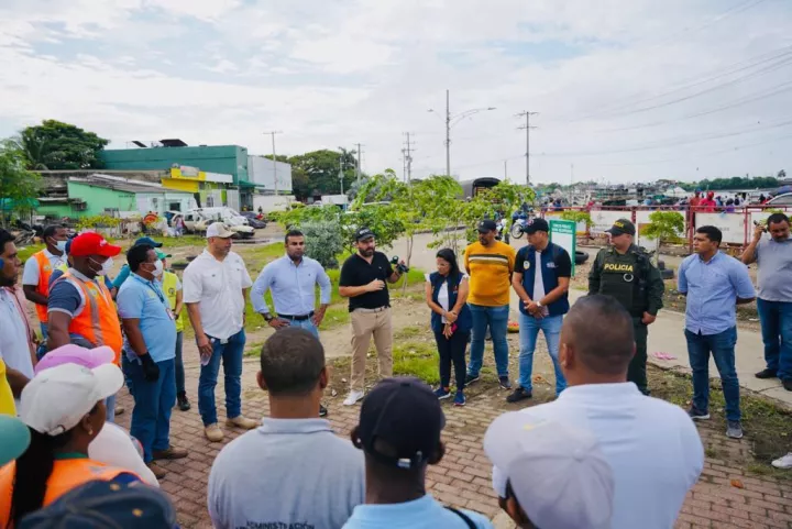 Cartagena de Indias D.T.y C., 11 de octubre de 2022. Desde la Oficina Asesora de Mercados Públicos y la Gerencia de Espacio Público y Movilidad, la Administración Distrital adelantó un nuevo operativo de recuperación de espacio público y sensibilización a vendedores informales del sector en el Mercado de Bazurto, a la altura de la Av. del Lago y zona de bajamar en la Ciénaga de Las Quintas.