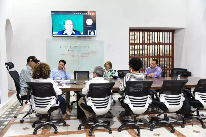 Cartagena de Indias D. T. C., 20 de noviembre de 2022. El alcalde de Cartagena, William Dau Chamat, sostuvo una reunión con directivos de Ecopetrol para socializar proyectos que promuevan el desarrollo en temas de superación de la pobreza y cómo afrontar la vulnerabilidad al cambio climático.