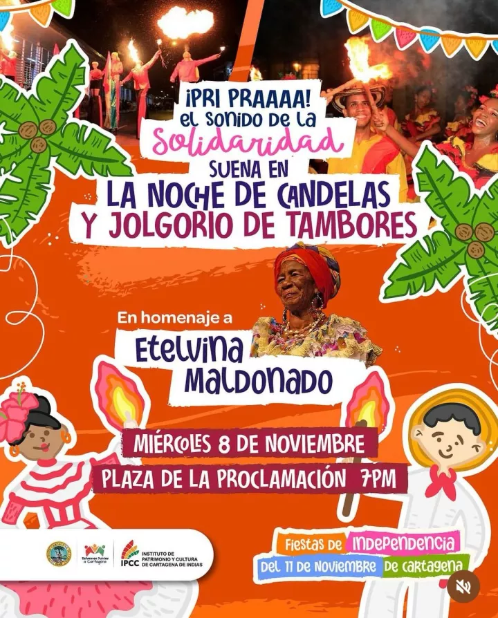 Cartagena de Indias D. T. y C; 08 de noviembre de 2023 Uno de los eventos más representativos de las Fiestas de Independencia del 11 de Noviembre se realizará hoy en la Plaza de la Proclamación, a partir de las 7:00 de la noche. Se trata de la tradicional Noche de Candelas y Jolgorio de Tambores y Cantadoras, organizada por la Alcaldía de Cartagena, a través del Instituto de Patrimonio y Cultura de Cartagena (IPCC).