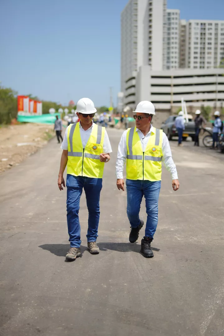 En una nueva jornada de inspección de obras, el mandatario distrital verificó en terreno, este sábado, la culminación de los trabajos de aplicación de carpeta asfáltica en esta conexión vial de 690 metros lineales, que enlaza estratégicamente la Transversal 54 y La Cordialidad con Parque Heredia, la antigua vía a Ternera, sectores como Ciudad Jardín, zona de Conurbación con Turbaco o el entorno de la Terminal de Transportes.