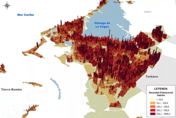 Rey presentó un mapa de calor de Cartagena que registra la densidad poblacional por hectáreas y un mapa satelital del tráfico vehicular de la ciudad ayer a las 7 de la noche, en plena hora pico, para evidenciar cómo el sector de La Carolina, Villa Estrella, Las Palmeras, Ciudad Jardín, El Pozón y la Bomba El Gallo es uno de los más densos y problemáticos, en cuanto a congestiones viales, al ser una zona donde habitan 250 mil personas: el 25 % de la población.