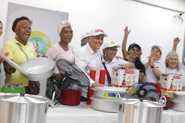 Cartagena de Indias, D.T. y C. 10 de agosto de 2024. Cinco grupos organizados de adultos mayores con apoyo de la Alcaldía Mayor y la Secretaría de Desarrollo Social recibieron una dotación de menaje por parte del alcalde Mayor, Dumek Turbay Paz.