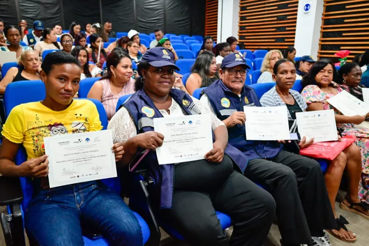 El fortalecimiento de las capacidades de estas 264 personas estuvo a cargo de la Fundación Dignitas. “Hoy estamos viendo el resultado, ha sido un camino trabajado, es un esfuerzo de todos, cada quien le dedicó tiempo a esto para aumentar sus capacidades; esto hace parte de la campaña relacionada con la lucha contra la violencia de género y la trata de personas, teniendo en cuenta que las anteriormente mencionadas son emergencias, y que ustedes hagan parte de este proceso es fundamental para la ciudad. Aquí aprendimos nuevas dinámicas para reconocer esos niveles de violencia y con eso esperamos reducir esos índices en Cartagena”, dijo Jackeline Balaguera, coordinadora del proyecto Conectados por los Migrantes y miembros de la Fundación Dignitas.