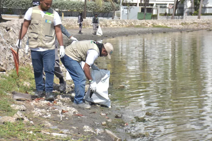 Desde el agua, con la ayuda de una lancha de la Guardia Ambiental, también se realizó la limpieza del cuerpo de agua, retirando todos los residuos orgánicos, principalmente algas y peces muertos, para evitar que en su proceso de descomposición, y por el efecto de las altas temperaturas que se viven durante esta época seca, se deteriore aún más la salud del ecosistema marino costero, del mismo modo, prevenir la posible aparición de enfermedades y otros problemas sanitarios que esta mortandad de peces pueda ocasionar.
