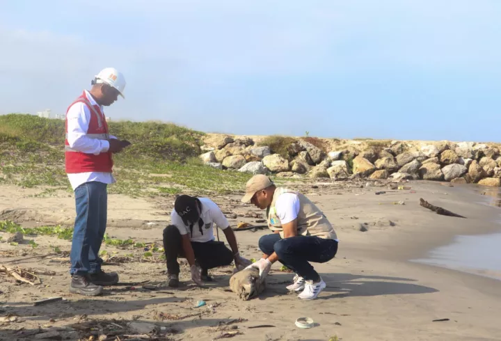 EPA Cartagena realiza inspección al cadáver de delfín Costero encontrado en playas de Crespo