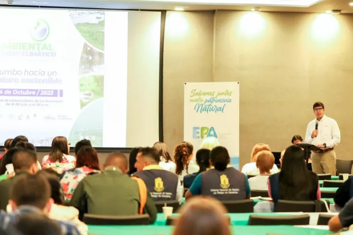 Cartagena de Indias D.T y C; 25 de octubre de 2023. EPA Cartagena y Ecopetrol realizaron el Foro Ambiental Cambio Climático Y Gestión Del Riesgo “RUMBO HACIA UN FUTURO SOSTENIBLE”, con ocasión del Día Internacional contra el Cambio Climático y en el marco de la estrategia “Enrútate por el ambiente”,