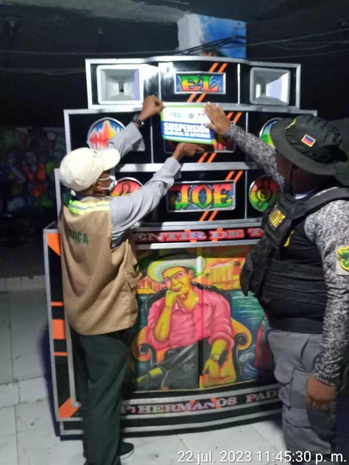 Durante el desarrollo de la jornada se impusieron 3 medidas preventivas de suspensión temporal de actividades generadoras de ruido en los establecimientos comerciales abiertos al público, produciendo contaminación acústica al ambiente y molestias a la población vecina.