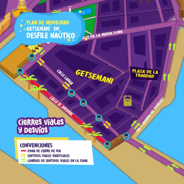 Cartagena de Indias, D. T. y C., 07 de noviembre de 2024.- El Departamento Administrativo de Tránsito y Transporte, DATT, informa que este viernes 8 de noviembre se aplicará un cambio vial en el barrio Getsemaní, como medida temporal de movilidad para brindar espacios seguros a los asistentes del “Bololó del Arsenal”.