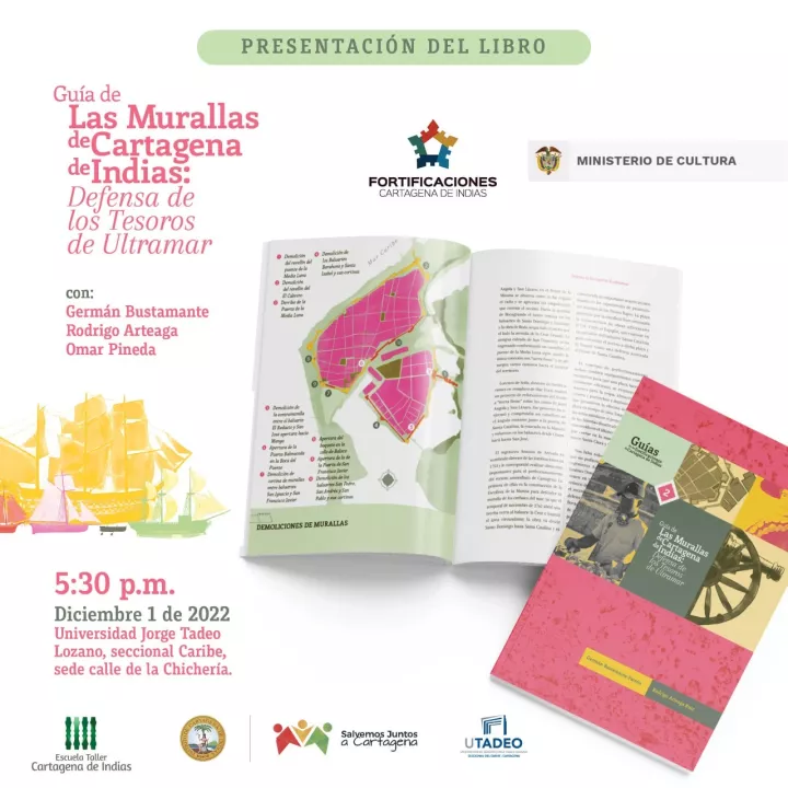Cartagena de Indias D. T. y C., miércoles 30 de noviembre de 2022. La Escuela Taller Cartagena de Indias (Etcar), el Ministerio de Cultura y la Universidad Jorge Tadeo Lozano, seccional Caribe, presentan el libro ‘Guía de Las Murallas de Cartagena de Indias: defensa de los Tesoros de Ultramar’, la segunda entrega de la serie Guía de las Fortificaciones. El lanzamiento será el jueves 1 de diciembre, a las 5:30 de la tarde, en la sede de la Universidad Jorge Tadeo Lozano, ubicada en la calle de la Chichería del Centro Histórico.
