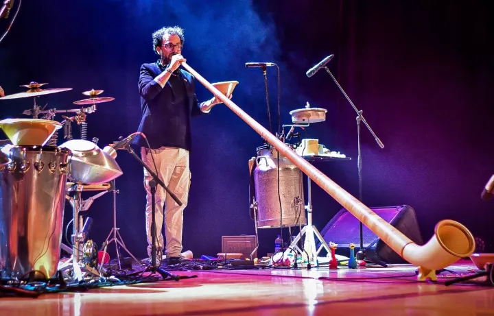 Este dúo es un ensamble musical en escena: mientras Enrico deleitó al público con el tradicional cuerno de los Alpes (Alphorn), Andi generó una versatilidad acústica que dio como resultado una experiencia folk-jazz.