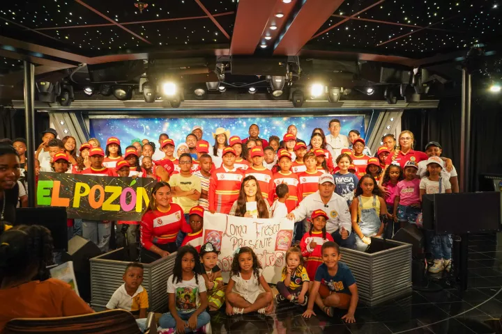 Cartagena de Indias D. T. y C., 8 de septiembre de 2024. En una iniciativa liderada por el Cuerpo de Bomberos de Cartagena, bajo la dirección de Jhony Pérez Sayas, 80 niños y niñas del programa de formación Bomberitos Comunitarios, provenientes de El Pozón, La Boquilla, Siete de Agosto, Bayunca, San Francisco, Loma Fresca, Altos de Nuevo Bosque y Cerros de Albornoz, junto a sus padres, vivieron una experiencia de formación y pedagogía a bordo del majestuoso crucero Freewinds.