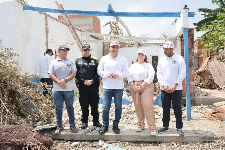 Turbay Paz llegó al barrio La Esperanza en compañía del director de la Oficina Asesora para la Gestión del Riesgo del Distrito, Daniel Vargas; el director del Cuerpo de Bomberos de Cartagena, Jhony Pérez Sayas, entidades que han estado al frente de la remoción de escombros y material que quedó en el predio luego de la caída del árbol, con el apoyo de Pacaribe. Además, también estuvo presente la gerente de Corvivienda, Gissela Román Ceballos, quien estará el frente de la obra, una vez los diseños cuenten con la aprobación de la familia.