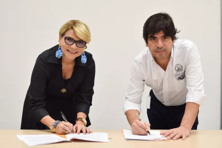 La firma del convenio estuvo a cargo de Miguel Ángel Henríquez López, rector la CURN; Nicolás Arrázola vicerrector; la directora del IDER, Viviana Londoño; William Marrugo Torrente, director de Fomento Deportivo y Recreativo; Jhonker Santamaría, Coordinador del Observatorio del deporte, y Dayra Sánchez, directora del Departamento de Proyección Social y Extensión de la Universidad.