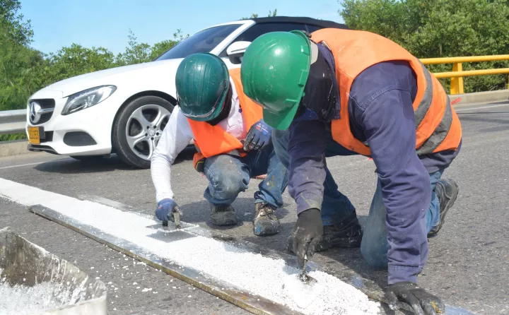 Por gestión del DATT, Concesión Ruta Costera demarca bandas reductoras de velocidad en Vía al Mar, en La Boquilla