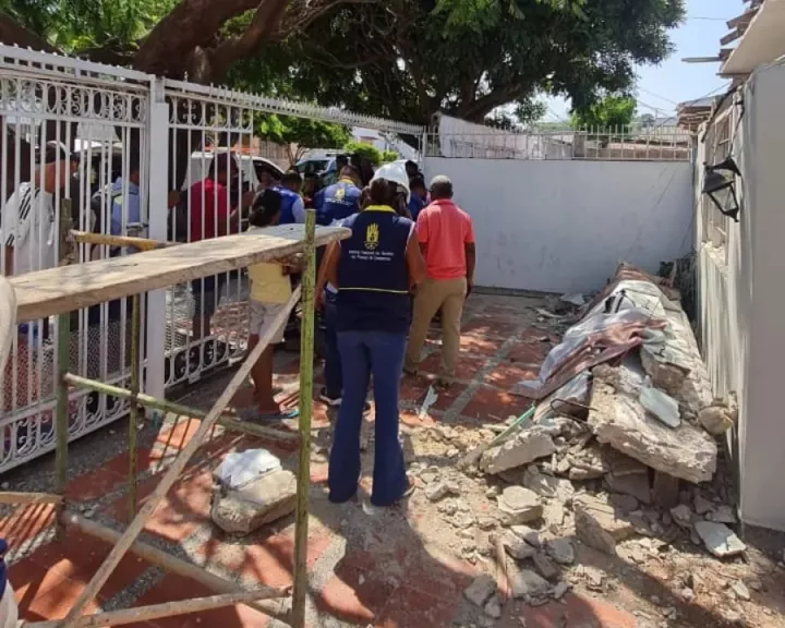 Cartagena, D.T. y C., 15 de febrero de 2023 La Oficina Asesora para la Gestión del Riesgo de Desastres (OAGRD), atendió una emergencia que se rpesentó en la calle 70 de Daniel Lemaitre, luego de la caída de una viga canal en una vivienda.