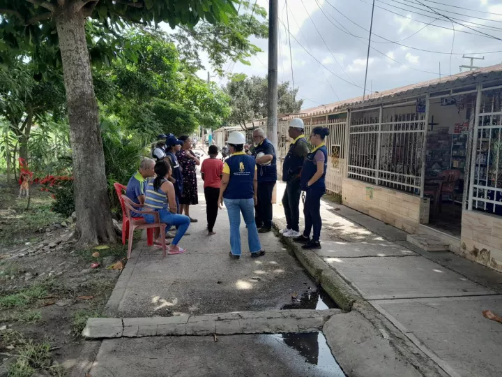 Cartagena de Indias D.T y C; 20 de agosto de 2023. Atendiendo un llamado del Cuerpo de Bomberos de la ciudad, la Oficina Asesora para la Gestión del Riesgo de Desastres de Cartagena (OAGRD) inspeccionó unas viviendas en el barrio Colombiatón, cuyos residentes aseguran que vienen presentando problemas en la estructura y cubierta de los hogares debido a factores externos, como el tránsito de buses en la zona.