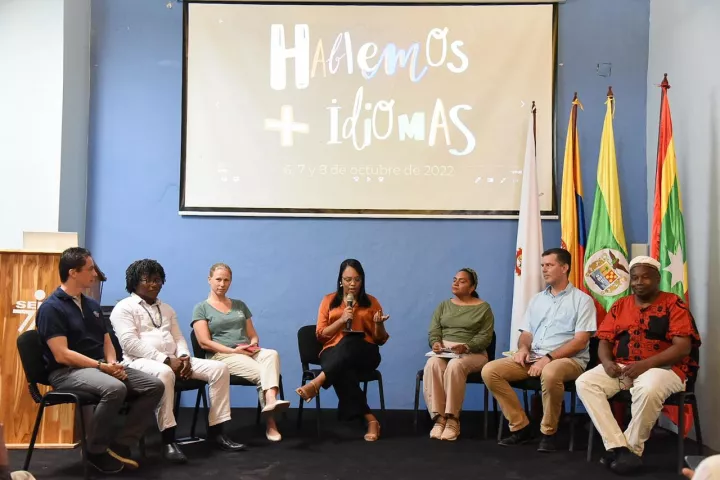 Cartagena de Indias D. T y C., 06 de octubre de 2022. Serán tres días de aprendizaje e intercambio cultural que iniciaron desde hoy en la Casa del Marqués del Premio Real, en el Centro Histórico. “Hablemos + Idiomas” es la iniciativa de la Alcaldía de Cartagena, que propone espacios de integración entre la comunidad educativa, el sector privado y la sociedad civil, para fortalecer las competencias de los cartageneros a nivel lingüístico en un mundo laboral cada vez más globalizado.