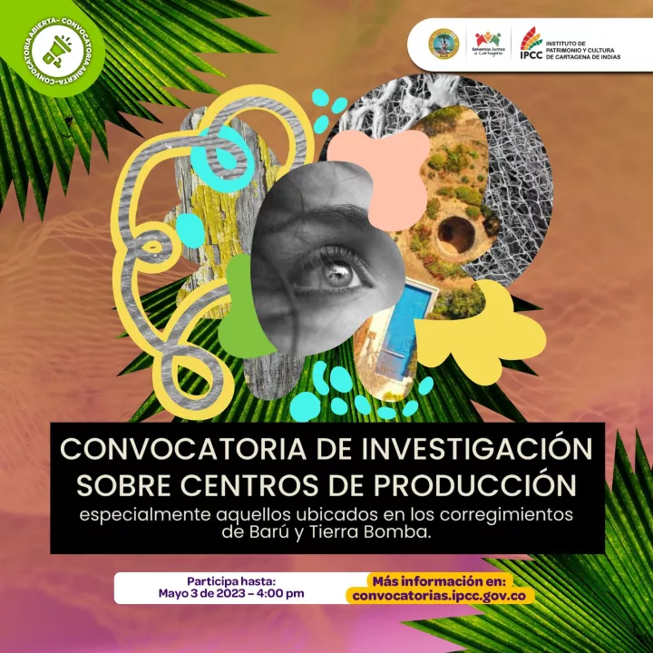 Cartagena de Indias D. T. y C; 27 de abril de 2023 El Instituto de Patrimonio y Cultura de Cartagena (IPCC) recuerda a los investigadores de la ciudad que hasta el miércoles, 3 de mayo, tienen plazo para inscribirse en la convocatoria de investigación sobre centros de producción, especialmente aquellos ubicados en los corregimientos de Barú y Tierra Bomba.