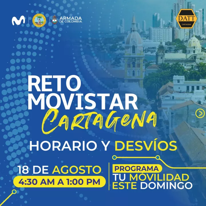 Cartagena de Indias, D. T. y C., 14 de agosto de 2024.- Cartagena es sede este domingo 18 de agosto de la competencia ciclística Reto Movistar, que se correrá en vías del Centro Histórico, Avenida Santander, Vía al Mar, La Cordialidad y Transversal del Caribe, entre las 4:30 am y la 1:00 pm.