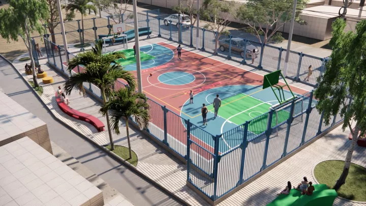 Gracias a este proyecto se recuperará gran parte de la infraestructura deportiva y recreativa en la comunidad del barrio de Chiquinquirá que supera los 9 mil habitantes. Actualmente, la cancha múltiple de la avenida Pedro de Heredia registra una capacidad del 56%, y será intervenida para el mejoramiento de la placa deportiva, iluminación led /Rietie – Retilap, cerramiento perimetral, graderías, drenaje, arborización e infraestructura que implique movilidad reducida.
