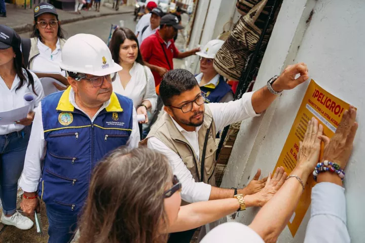 Cartagena de indias D. T y C 22 de marzo de 2024. La Dirección de Control Urbano lleva a cabo un primer recorrido para la señalización y requerimiento a edificaciones en deterioro ubicadas en el Centro Histórico de la ciudad, en compañía del Instituto de Patrimonio y Cultura de Cartagena -IPCC, la oficina para la Gestión del Riesgo, la Inspección de Policía de la Comuna 1B, la Alcaldía Local Histórica y del Caribe Norte y Personería Distrital.