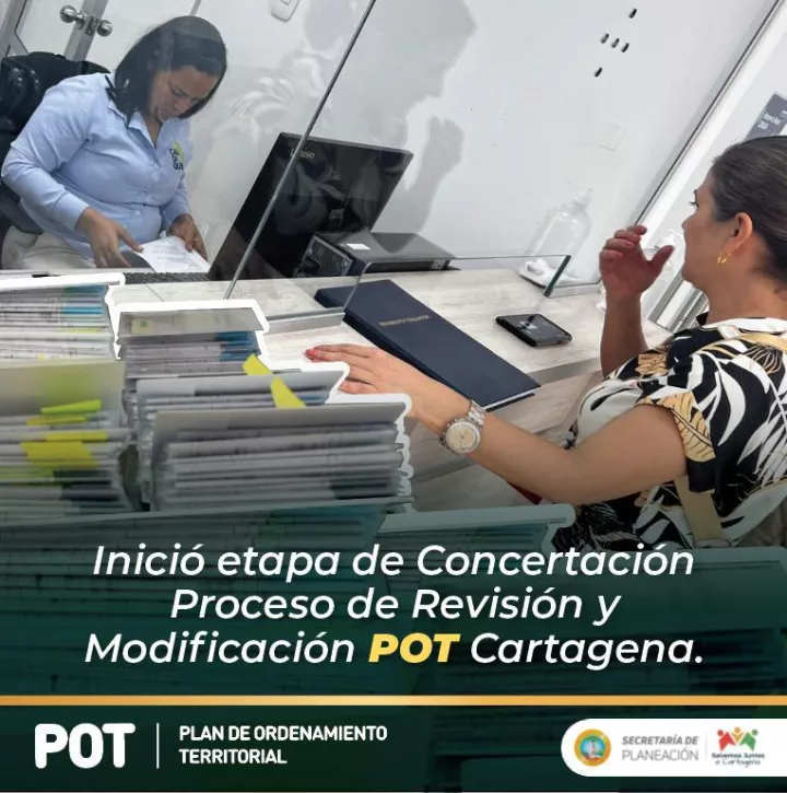 *Cartagena de Indias D. T. y C; 20 de mayo de 2023.*La Secretaría de Planeación Distrital se permite informar a toda la ciudadanía que, en el desarrollo del proceso de revisión y modificación ordinaria de largo plazo del Plan de Ordenamiento Territorial (POT) del Distrito de Cartagena, el 18 de mayo de 2023 fue radicado ante las oficinas de la Corporación Autónoma del Canal del Dique – CARDIQUE los documentos necesarios para la sustentación del proyecto de Plan de Ordenamiento Territorial, de acuerdo a lo estipulado en el Decreto 1232 de 2020, con el único objeto de dar inicio a la etapa de concertación ambiental con dicha entidad.