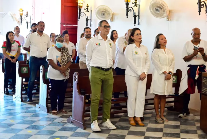 Cartagena de Indias D. T. y C., 24 de enero de 2023. El alcalde de Cartagena, William Dau Chamat, en compañía del Gabinete Distrital, asistió a la celebración de la eucaristía que da inicio a la novena en honor a la Virgen de la Candelaria, en el Cerro de La Popa, considerada por los fieles católicos, patrona de Cartagena y la región Caribe.