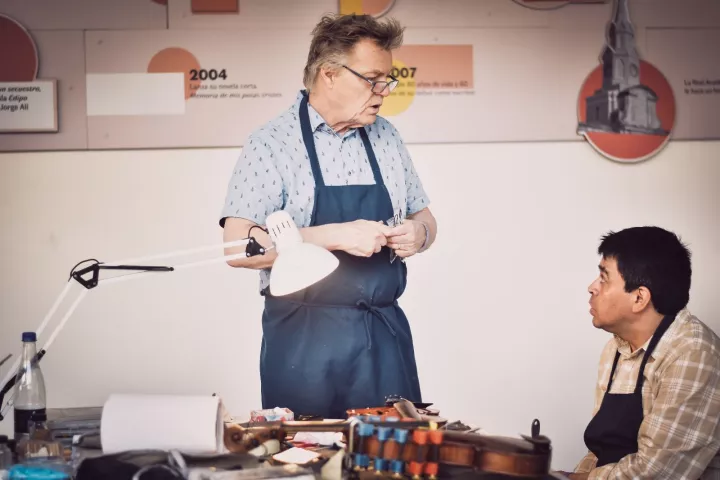 En esta versión de ConCuerda 2023, los cartageneros podrán asistir a talleres de lutería con el apoyo del reconocido violinista y solista canadiense Morrry Kernerman, quien impartirá clases magistrales a estudiantes avanzados de violín; y los maestros luteros Tom Wilder y Ángel Álvarez, de Wilder & Davis Luthiers de Canadá y de José Miguel López, de Colombia, quienes participarán en la restauración de aproximadamente cuarenta violines, violas, violonchelos y arcos del “Colectivo Canta” del Barrio Nelson Mandela, apoyando el trabajo de la orquesta sinfónica de la Institución Educativa José Manuel Torices de Cartagena (INEM).