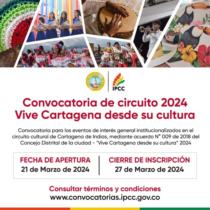 En esta convocatoria, que va hasta las 12:00 pm del 27 de marzo, pueden presentarse los eventos culturales que conforman el Circuito Cultural Anual Distrital de Cartagena, a través de las personas jurídicas que se encuentren en capacidad de demostrar que son los creadores, fundadores o propietarios de dichos eventos.