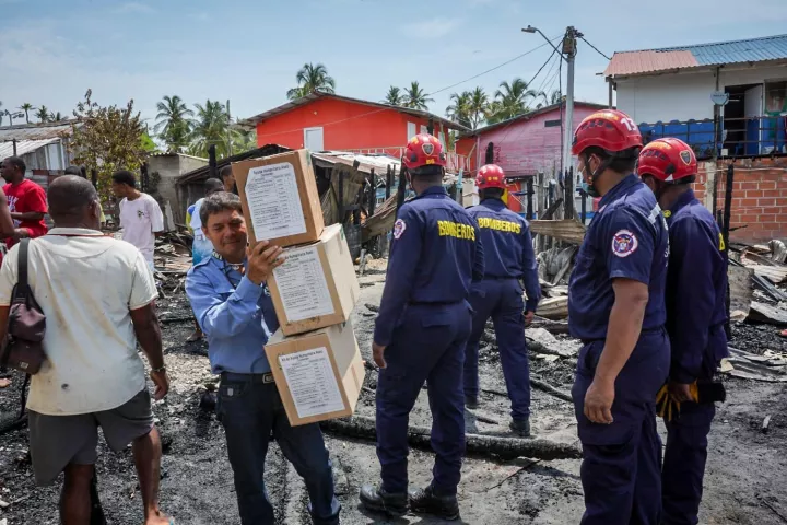 Cartagena de Indias D. T. y C., 19 de abril de 2025. La Alcaldía Mayor de Cartagena, a través de la Oficina Asesora para la Gestión del Riesgo de Desastres (OAGRD), en articulación con la Armada Nacional y el Cuerpo de Bomberos del Distrito, respondió de manera inmediata a la situación ocurrida en la Isla Múcura, archipiélago de San Bernardo, donde un incendio afectó viviendas y cabañas de 14 familias, impactando a más de 62 personas.