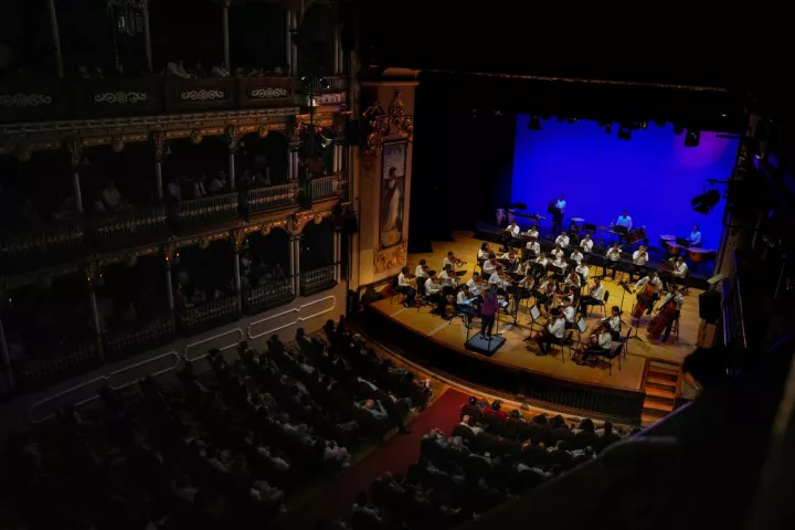 Cartagena de Indias D. T. y C, 02 de mayo de 2023. Ayer, lunes 1 de mayo, en el icónico Teatro Adolfo Mejía de Cartagena, se presentó la Orquesta Sinfónica de Cartagena con lleno total. La Orquesta, conformada por 41 jóvenes de más de 35 barrios de la ciudad, estuvo bajo la batuta de su directora titular para el 2023, la maestra Paola Ávila.