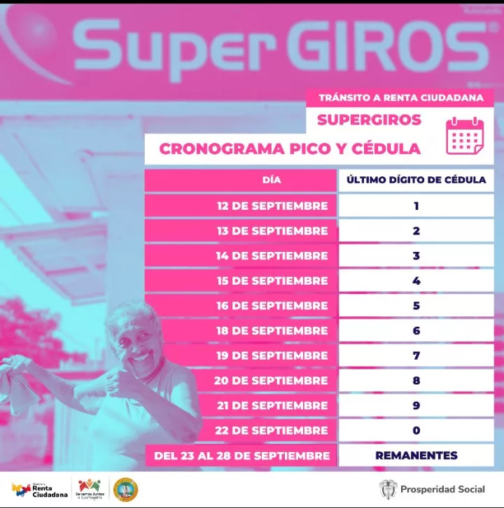 Cartagena de Indias D.T. y C; 11 de septiembre de 2023. A partir de mañana, 12 de septiembre, iniciará el proceso de pagos destinado a más de 15,000 beneficiarios del programa Tránsito a Renta Ciudadana, quienes recibirán sus incentivos a través del canal de pagos SuperGiros. Para retirar su incentivo, les recordamos que deben llevar consigo su cédula de identidad a cualquier punto disponible.