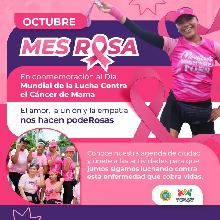 Bajo la denominación del “MES ROSA: EL AMOR, LA UNIÓN Y LA EMPATÍA NOS HACE PODEROSAS”, las mujeres cartageneras y sus familias se sentirán inmersas en una marea rosa de esperanza y por la defensa de la vida. Se trata de articular experiencias, conocimiento y acompañamiento para concientizar a los ciudadanos sobre la importancia de medidas preventivas como el autoexamen, conservar hábitos y estilos de vida saludables y realizar actividad física.