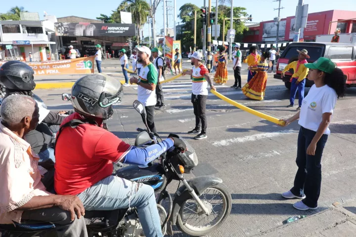 En la estación Cuatro Vientos, la estrategia de cultura vial "Me Pongo la 10" cobró vida a través de dinámicos shows de baile al ritmo de tambores y pitos, además de personajes representativos como la muerte y mimos. Estos elementos llamaron la atención de conductores y peatones, a quienes se les invitó a respetar las señales de tránsito y los pasos peatonales, fomentando comportamientos que previenen accidentes y salvan vidas.
