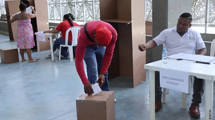 Cartagena de Indias D.T y C; 8 de septiembre de 2023. El Coliseo Rocky Valdés se convirtió en el escenario donde más de 400 víctimas se encuentran eligiendo a 26 representantes para la Mesa Distrital de Participación de Víctimas. La Secretaría del Interior y Convivencia Ciudadana, en articulación con la Personería Distrital, la Unidad de Víctimas y la Organización Internacional para las Migraciones (OIM), realizaron la apertura para dar inicio a las votaciones de dichas elecciones con el objetivo de demostrar el compromiso con la reconciliación y la justicia para las víctimas del conflicto armado.