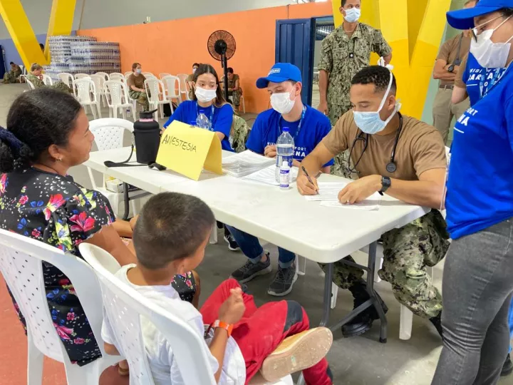 Cartagena de Indias D. T. y C., 12 de noviembre de 2022. En el Coliseo de Combate médicos de diferentes especialidades que hacen parte de la misión humanitaria del gobierno de Estados Unidos, a través del Buque Comfort valoraron a los pacientes que fueron preseleccionados para ser intervenidos quirúrgicamente a bordo del buque hospital.