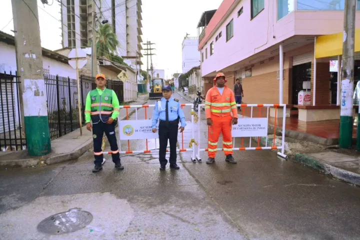 Cartagena de Indias, D.T y C., 28 de febrero de 2024.- Por inicio de las obras de restitución del espacio público que el edificio Aquarela ocupaba de manera irregular, se aplican medidas de movilidad para seguridad vial de conductores y peatones.
