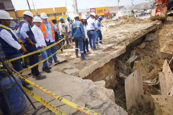 Cartagena de Indias D. T. y C., 19 de febrero de 2024. Se reduce calzada en zona de trabajos para recuperar tubería de Aguas de Cartagena, en Ceballos.